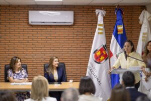 Carolina Mejía manifestó su agradecimiento a la Cámara Santo Domingo y recordó que esta iniciativa surgió en una sesión ordinaria del Consejo Económico y Social Municipal, donde explicó el funcionamiento de Centro Futuro y las oportunidades de ampliar las acciones formativas en colaboración con el empresariado, una invitación que fue oportunamente correspondida por la organización privada.